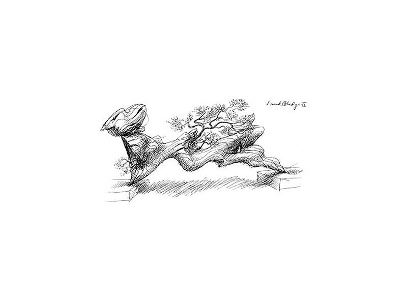 Like the great natural arches of the West, "Landbridge II" spans across space, touching only on two points. Strata lines