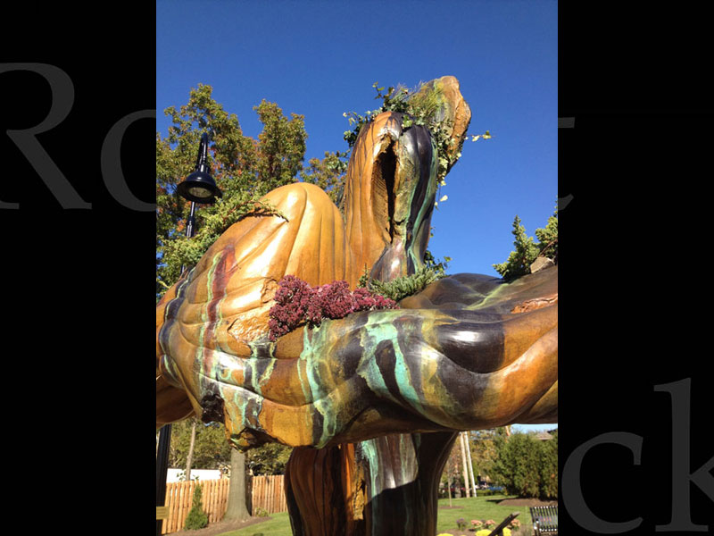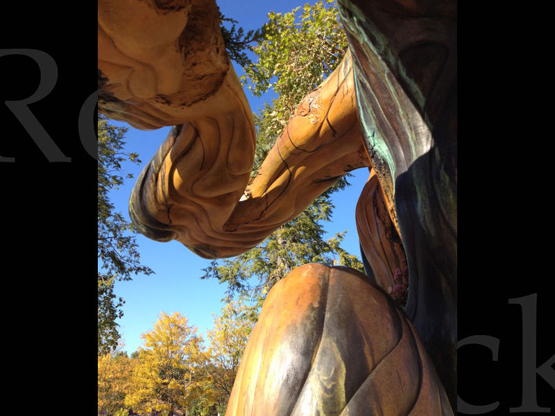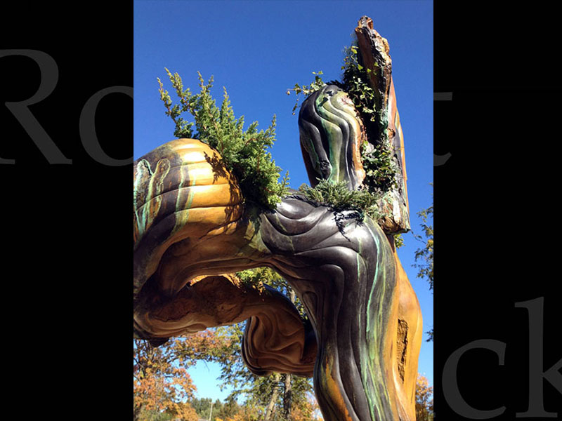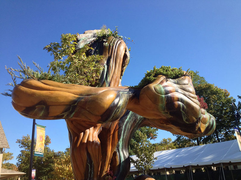 A monumental-sized bronze sculpture, “Seated Earth” symbolizes the earth in human form with strata and flora. It is full of life bursting forth from head and shoulders, arms and legs.
