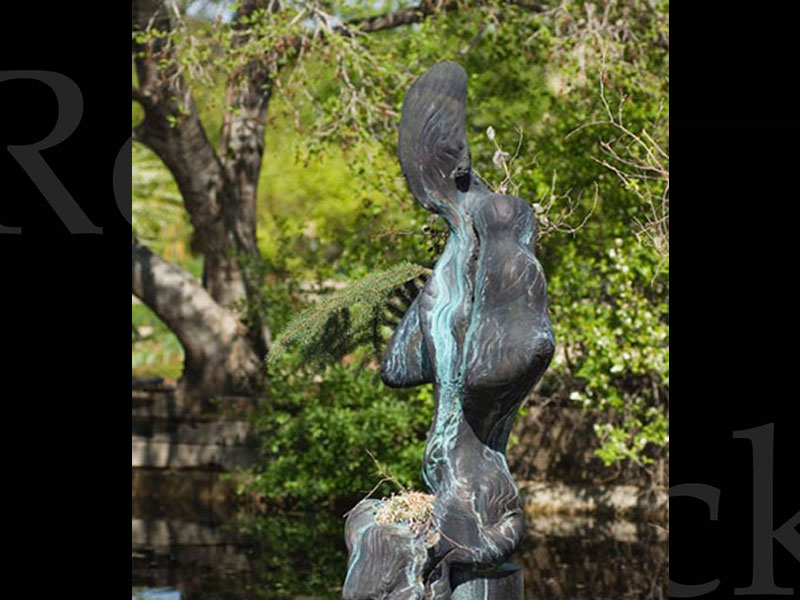 "Water" is a seated figure that flows as water would spilling over falls. It is a water figure. Plants grow from it much as plants grow by a stream.